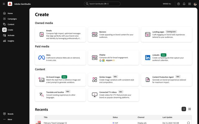 디스플레이 광고 기능도 개선됐다. 아마존 애즈와의 협업을 통해 사전 제작된 템플릿으로 캠페인 에셋을 빠르게 제작할 수 있고, 링크드인 광고용 에셋을 생성해 링크드인 미디어 라이브러리로 직접 내보낼 수 있다. 구글 캠페인 매니저 360을 통한 다양한 채널 배포도 지원한다. AI로 생성한 이미지는 브랜드 가이드라인에 맞춰 디스플레이 광고나 마케팅 이메일 등에 활용할 수 있으며, 현재 베타 버전으로 제공된다.