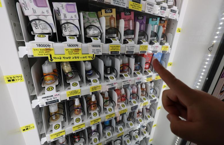 13일 서울 시내의 한 전자담배 가게에서 액상 담배를 판매하고 있다.   정부가 합성 니코틴 규제 여부를 확인하기 위해 유해성 연구 용역에 속도를 내면서 담뱃세 과세 여부를 논의한다고 밝혔다. 2024.05.13. 서울=뉴시스