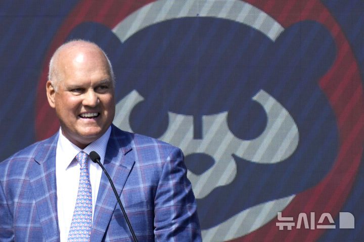 [시카고=AP/뉴시스] 2024년 6월23일(현지 시간) 미국 일리노이주 시카고의 리글리 필드에서 열린 시카고 컵스와 뉴욕 메츠와의 2024 메이저리그 경기에 앞서 라인 샌드버그가 자신의 동상을 공개하기 전 연설을 진행하고 있다. 샌드버그는 28일 암 투병 끝에 향년 65세로 별세했다. 2025.07.29.
