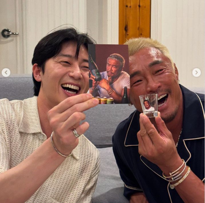 사진에서 추성훈은 박서준과 함께 환한 웃음을 지으며 화기애애한 시간을 보내고 있는 모습이다. 또한 추성훈은 박서준이 선물한 '이태원 클라쓰' 대본을 들고 기뻐하고 있어 눈길을 끈다.