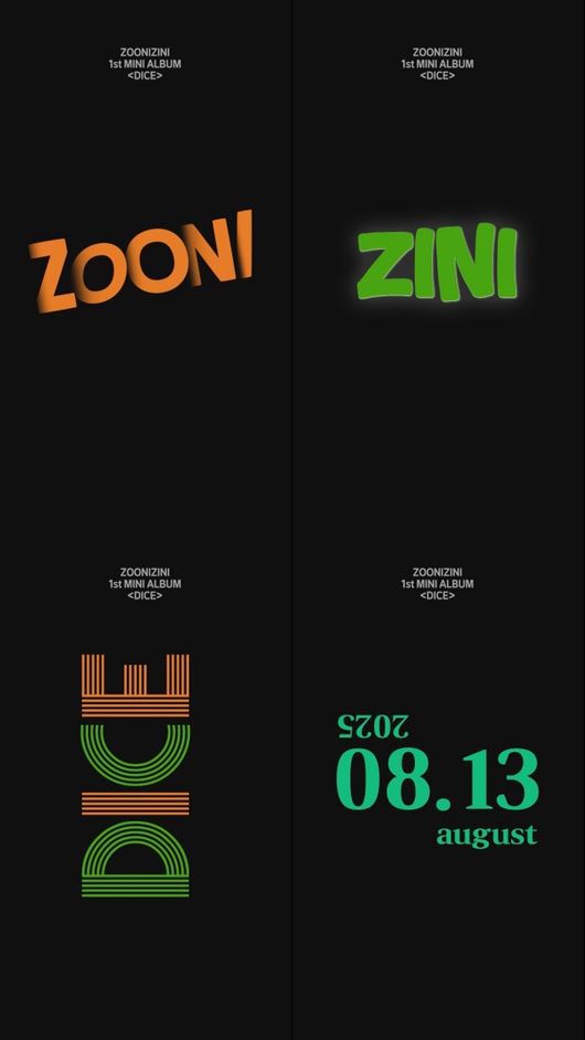 티저에는 주니지니의 영문 유닛명 ‘ZOONI’, ‘ZINI’를 시작으로 앨범 형태 ‘1st MINI ALBUM’, 앨범명 ‘DICE’, 발매일 ‘2025. 08. 13’이 역동적인 타이포그래피로 등장해 시선을 사로잡았다. MJ(본명 김명준)와 진진(본명 박진우)의 이름을 합친 유닛명 주니지니, 주사위를 뜻하는 앨범명 ‘DICE’가 두 사람이 유닛으로 펼칠 색다른 시너지를 기대하게 한다.