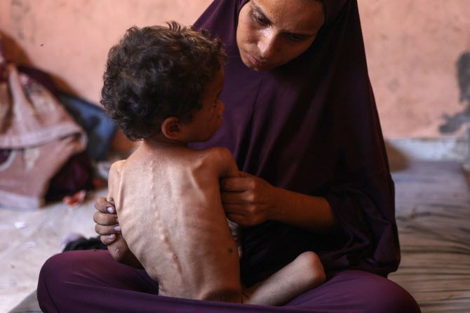 이날 가자지구 보건부는 지난 24시간 동안 최소 14명이 굶주려 사망했다고 밝혔다. 세계보건기구(WHO)에 따르면 이달 들어서만 어린이 24명을 포함해 63명이 영양실조로 목숨을 잃었다. 생후 6주 된 신생아가 굶어 죽는가 하면 건강했던 아이들도 먹지 못해 영양실조로 사망하는 사례가 나오고 있다. WHO는 가자지구 5세 미만 어린이 가운데 20%가 영양실조 상태인 것으로 파악하고 있다.