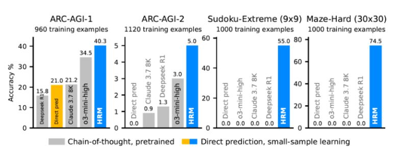 반면, HRM은 언어를 거치지 않고 내부 잠재 공간(latent space)에서 추론을 진행해, 더 빠르고 안정적인 문제 해결이 가능하다는 것이다.