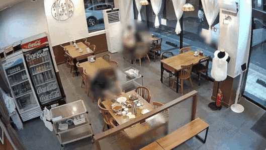 지난 11일 오후 인천 서구 청라동의 한 중식당 통유리를 깨고 승용차가 돌진하자 식사 중이던 커플이 황급히 대피하는 모습. 연합뉴스 |