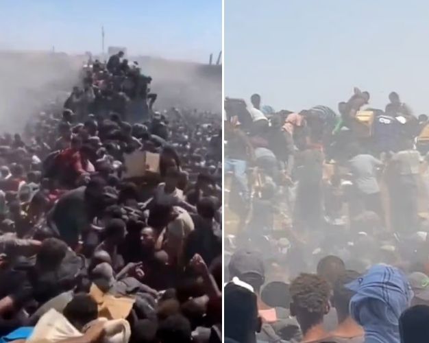 팔레스타인 가자지구에 구호 트럭이 도착하자 식량을 얻기 위해 수천 명이 한꺼번에 몰려든 처참한 현장이 공개됐다.