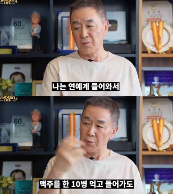 송승환이 “소주 40병을 마셨다는 얘기가 후배들 사이에 전해진다”고 묻자 한진희는 “요즘으로 말하면 그건 가짜 뉴스다. 소주 7~8병 정도 마셨고, 폭탄주 30잔이다”고 답했다.
