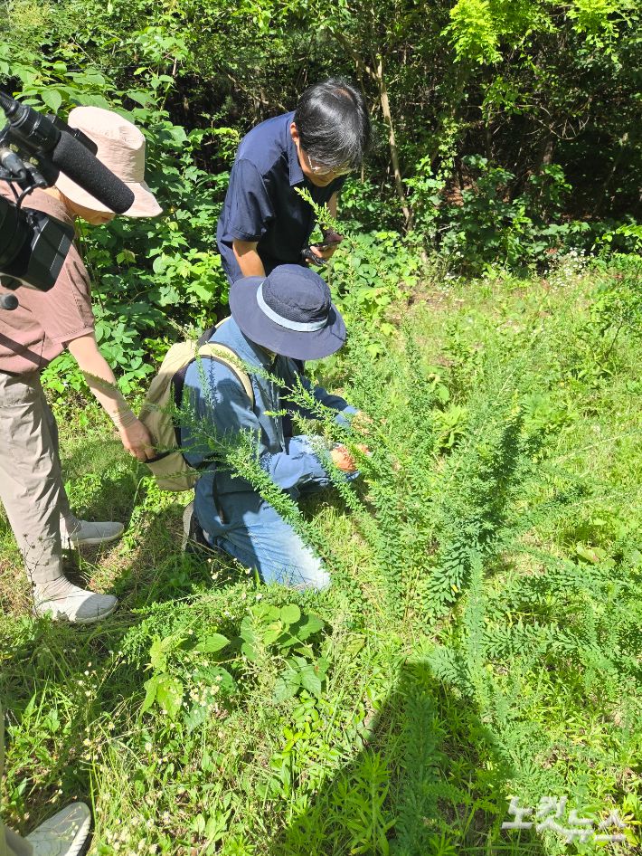 경기도 고양시가 지난 달 산황산 일대 골프장 증설 계획을 인가하면서 반발 여론이 확산하고 있다.  산황산 골프장 증설 계획은 10년 넘게 장기 미집행돼왔다. 고양시의회도 지난 2월 도시계획 해제 권고안을 통과시켜 골프장 증설안은 폐기 수순을 밟고 있던 터였다. 취재진이 최근 고양환경운동연합 조정 의장과 생태학자 이강운 박사와 함께 산황산 일대 식생 관찰에 나섰다. 사진 = 고양환경운동연합