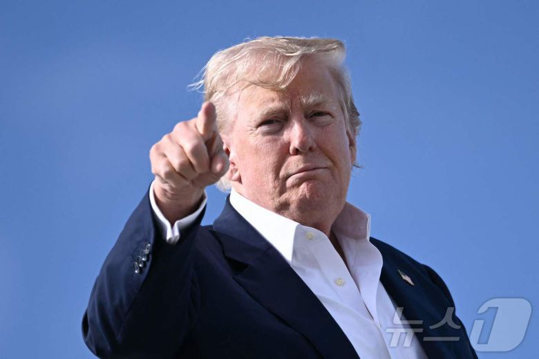 29일(현지시간) 도널드 트럼프 미국 대통령이 스코틀랜드에서 워싱턴으로 돌아가는 대통령 전용기(에어포스원)에 탑승하고 있다. 2025.07.29 ⓒ AFP=뉴스1 ⓒ News1 김지완 기자