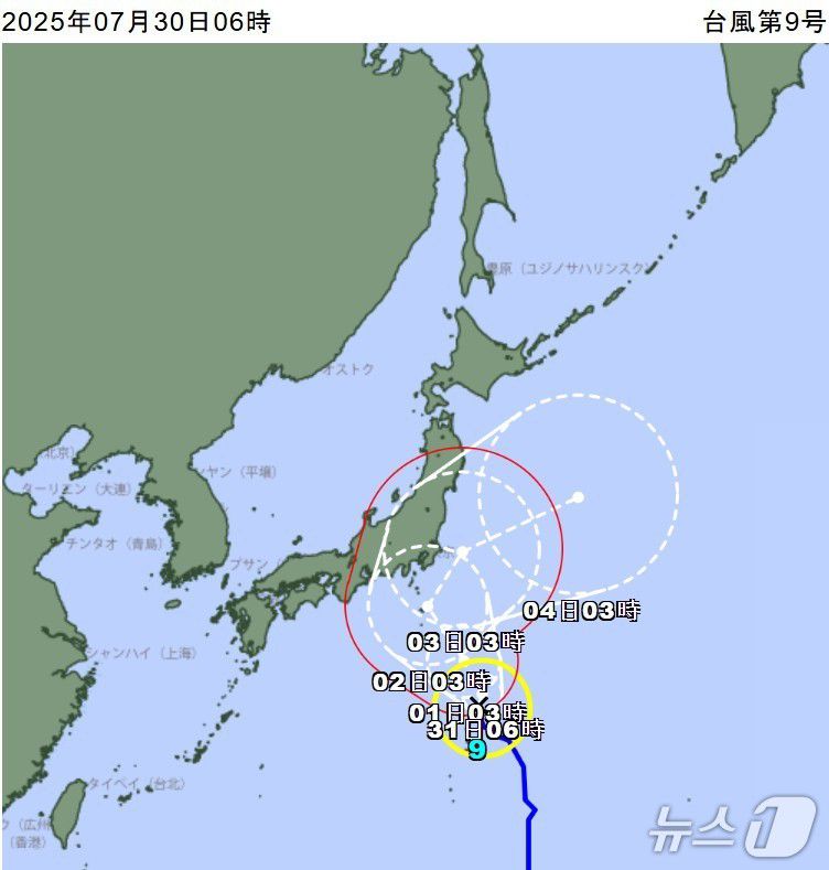 (서울=뉴스1) 유채연 기자 = 제9호 태풍 크로사가 8월 2일에서 3일 사이 일본 간토 지방에 접근할 것으로 보인다고 일본 날씨 매체 덴키가 30일 보도했다.