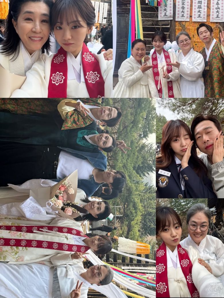 천지선녀의 모습부터 악귀 봉수가 빙의된 성아의 모습까지 모두 공개한 조이현은 김미경, 추자현, 윤병희, 이수미 등 무당 패밀리와 함께 촬영한 사진들을 게재했다.
