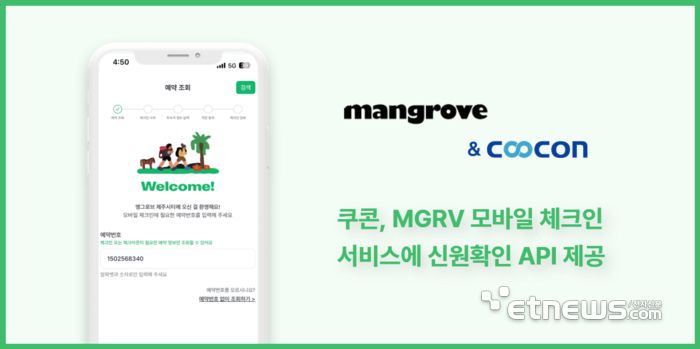 이번 협업으로 엠지알브이는 '맹그로브 제주시티' 모바일 웹 기반 체크인 서비스에 쿠콘 API를 연동해 비대면 입실 프로세스의 법적 준수와 안정성은 물론 운영 효율성을 한층 강화했다.