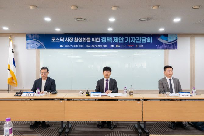 벤처기업협회, 코스닥협회, 한국벤처캐피탈협회(VC협회) 등 3개 단체는 30일 오전 서울 영등포구 중소기업중앙회에서 열린 ‘코스닥시장 활성화를 위한 정책 제안 기자간담회’를 열고 이재명 대통령이 공언한 ‘코스피 5000시대’와 함께 ‘코스닥 3000시대’를 향해 가야 한다고 강조했다. 코스닥 시장이 본래 목적처럼 혁신 벤처·스타트업의 성장 발판으로서 작용하려면 상장과 자금투자 측면에서 모두 유동성을 공급해야 한다는 게 골자다.