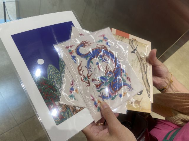 기록적 폭염이 위세를 떨친 28일 오후 서울 용산 국립중앙박물관 상품관에서 만난 영국인 관광객 던 래담(50대·여)씨는 박물관 이곳 저곳을 둘러 보며 들뜬 목소리로 말했다. 그는 “최근 넷플릭스 시리즈 '오징어게임'과 애니메이션 '케데헌'을 보고 한국에 놀러 왔다”며 "그림도 예쁜데, 안경닦이랑 손수건은 평소 필요했던 물건이라 구매 했는데 영국에 가서도 잘 쓸 것 같다"고 흐뭇해 했다.