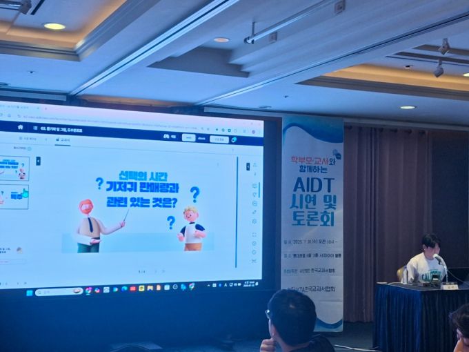 30일 한국교과서협회는 서울 롯데호텔에서 'AIDT 시연 및 토론회'를 개최했다. 시연자로는 실제 AIDT를 사용하고 있는 교사들이 참석해 영어, 수학, 정보 AIDT 수업 과정과 영상을 공개했다. 천재교과서, 아이스크림미디어, 비상교육 등 교과서 업체들이 최근 초중등교육법 개정안에 반대하며 개최한 행사의 일환이다.