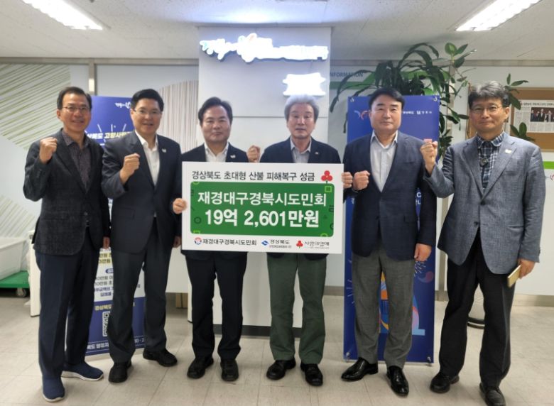 재경대구경북시도민회는 30일 경북도 서울본부를 방문해 향우회원들로부터 모금한 산불 피해 복구 성금 19억 2601만원을 쾌척하고 산불 피해 주민들의 조속한 복구와 일상 회복을 기원했다.