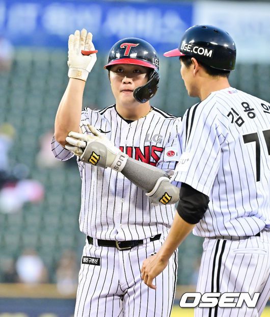[OSEN=잠실, 박준형 기자] 29일 오후 서울 잠실구장에서 ‘2025 신한 SOL BANK KBO리그’ LG 트윈스와 KT 위즈의 경기가 진행됐다. 이날 경기에서 LG는 치리노스를, KT는 오원석을 선발투수로 내세웠다. 3회말 2사 2루 LG 손용준이 역전 1타점 적시타를 날린뒤 김용의 1루 코치와 하이파이브를 하고 있다. 2025.07.29 / soul1014@osen.co.kr 이 기사의 카테고리는 언론사의 분류를 따릅니다.0공유하기