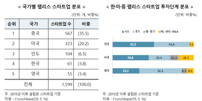하지만 보고서는 팹리스 관련 국내 생태계는 아직 허약한 수준이라고 지적했다. 실제로 전 세계 팹리스 스타트업 가운데 한국 기업 비중은 3.8%로 중국(35.5%)과 미국(20.2%)에 크게 뒤처지고 있는 상황이다.