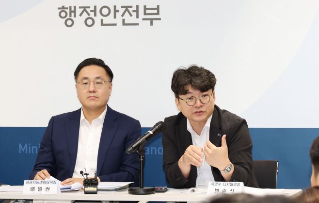 변준석 행정안전부 국립과학수사연구원 디지털과장(오른쪽)이 7월 29일 정부세종청사에서 '딥페이크 불법콘텐츠 탐지 분석모델 및 활용성과'에 대해 기자질문에 답변하고 있다. /행정안전부 |