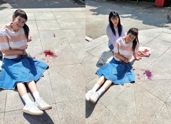 사진에는 해가 쨍쨍한 무더위 속 촬영 중인 김하영의 모습이 담겨 있다. 칼에 찔려 길바닥에 앉아 있는 모습이 간담을 서늘하게 한다. 긍정적인 미소로 촬영에 최선을 다하는 김하영의 태도가 인상적이다.