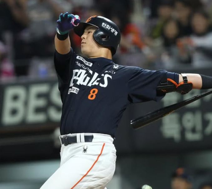 [서울=뉴스핌] 한화 4번 타자 노시환이 지난 5월 2일 광주 KIA와의 경기에서 연장 11회 결승 홈런을 기록했다. [사진 = 한화] 2025.05.02 wcn05002@newspim.com |