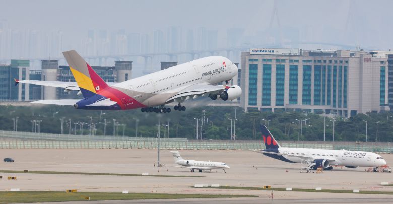 인천국제공항에서 이륙하는 아시아나항공 여객기의 모습. /연합뉴스 |