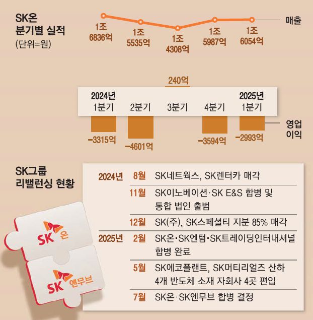 하지만 전기차 캐즘이 예상보다 장기화하며 SK온을 둘러싼 우려가 커짐에 따라 근원적 경쟁력 확보를 목표로 윤활유 자회사 SK엔무브와 합병을 택하며 사업·재무구조 리밸런싱이란 두마리 토끼를 잡기 위한 승부수를 던진 셈이다.