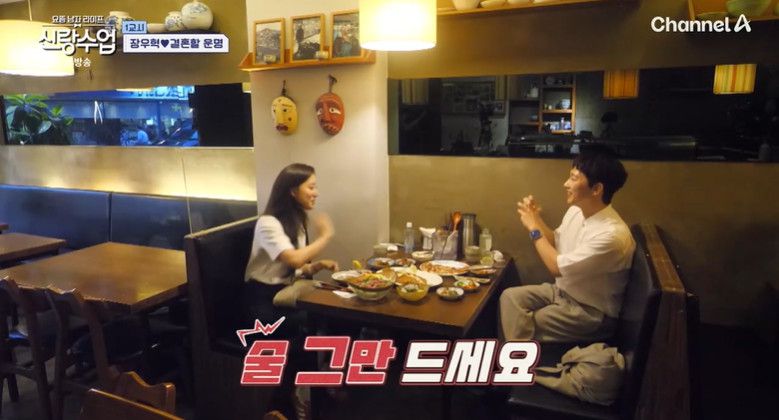 장우혁이 메뉴 주문을 하며 술을 언급하자 오채이는 "술 하셔도 괜찮냐"고 물었고, 이에 장우혁이 "괜찮다. 차 두고 와서"라고 하자 그는 "비도 오니까 한잔 가볍게"라고 호응했다.