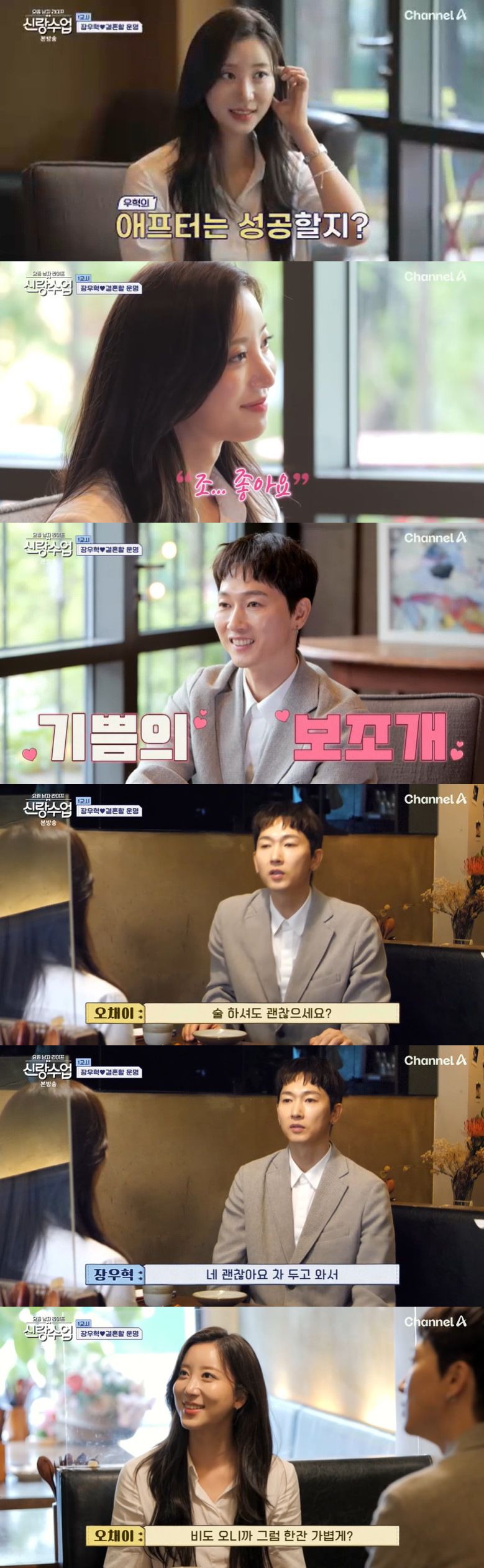 30일 방송된 채널A '요즘 남자 라이프-신랑수업'(신랑수업) 174회에서는 장우혁과 이다해의 절친한 후배 배우 오채이의 소개팅 현장이 공개됐다.