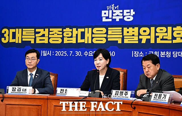 [더팩트ㅣ김세정 기자] 윤석열 전 대통령을 겨눈 3대 특검 수사가 국민의힘을 전방위로 압박하며 더불어민주당은 반사이익을 기대할 수 있는 유리한 국면을 맞았다. 민주당은 이 기회를 최대한 활용하기 위해 특검 대응 전담조직까지 가동하며 총력전에 나섰지만, 강선우 의원 사퇴에 이어 최동혁 인사혁신처장 논란까지 겹치며 여파가 이어지고 있다. 수사 국면의 수혜를 기대하면서도 마냥 웃지 못하는 복잡한 셈법을 하고 있다.