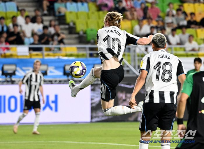 다만 기대를 모았던 방한과 달리 뉴캐슬의 경기력은 지나치게 아쉬웠다. 전반 초반 앤서니 고든, 안토니 엘랑가가 전방에서 날카로운 몸놀림을 보여주며 팀 K리그 수비를 흔들던 뉴캐슬은 전반 중반부터 오히려 팀 K리그에 주도권을 내주는 장면이 적지 않았다. EPL에서 베테랑으로서 활약한 자말 러셀레스와 기대주 티노 리브라멘토를 중심으로 뭉친 수비진은 이동경과 모따, 전진우를 막는 데 급급했다. 실점까지 허용했다.