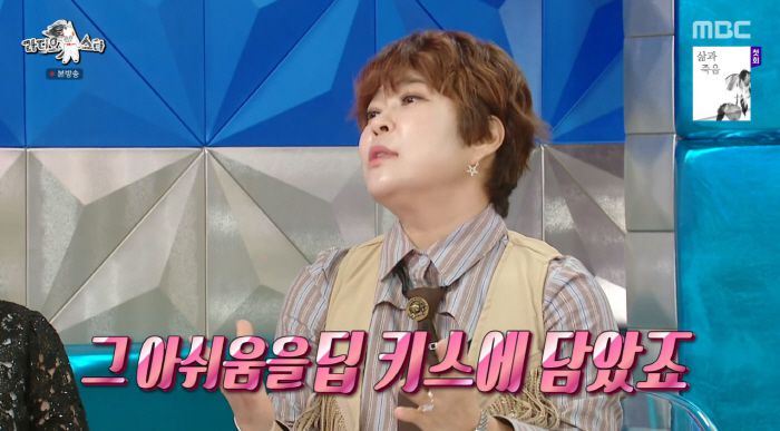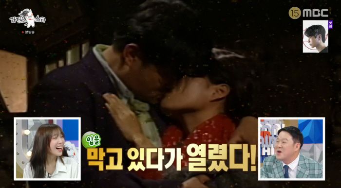 이날 김구라는 "조혜련 씨가 화제의 키스신이 있다던데 김진수 씨랑 한 거냐"라고 물었다.