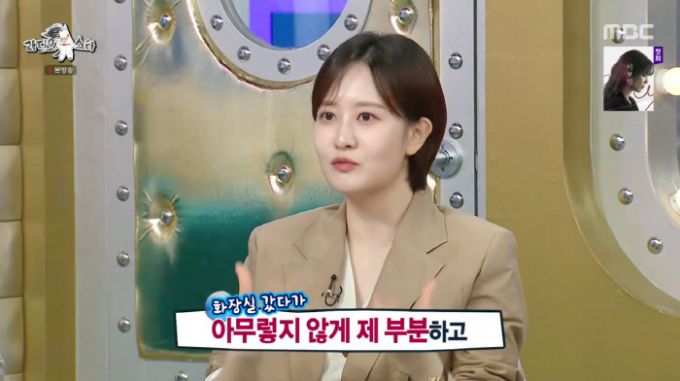이어 "뉴스 진행할 때 조현용 앵커가 말하고 있으면 얼른 화장실에 갔다. 그리고 돌아와 제 부분을 한 뒤 다시 화장실을 갔다"고 했다.