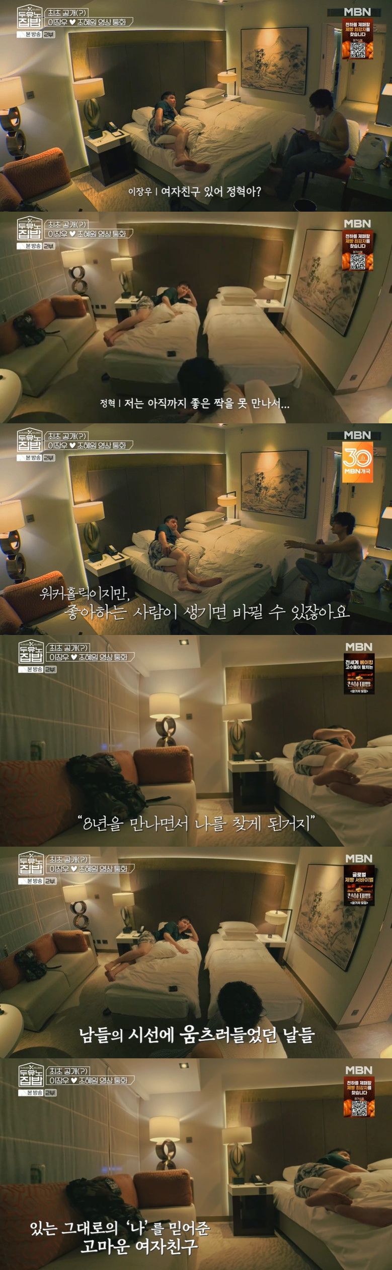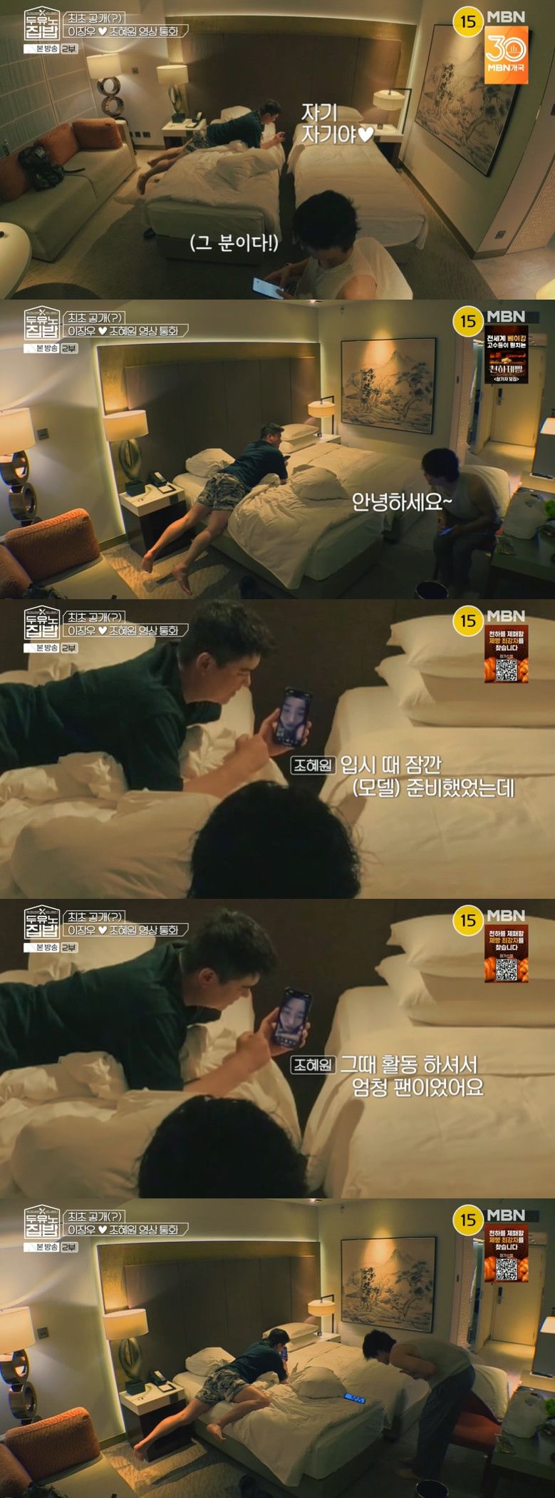 이장우는 침대 위에서 "자기야"라며 다정하게 조혜원을 불렀고, 이어 정혁은 "안녕하세요"라고 인사를 건넸다.