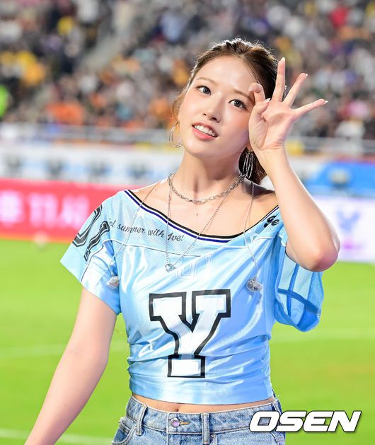 걸그룹 아이브 안유진이 하프타임 공연을 마치고 이동하며 인사를 하고 있다. 2025.07.30 / jpnews@osen.co.kr