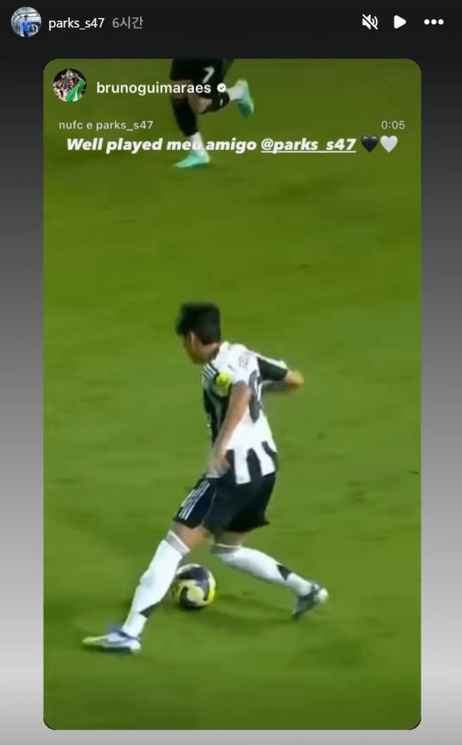 박승수의 드리블 장면은 뉴캐슬 공식 SNS에도 올라왔다. 뉴캐슬 핵심 미드필더 기마랑이스는 자신의 SNS에 이 영상을 공유하면서 박승수를 언급했고 "내 친구, 정말 잘했어"라며 멘트까지 남겼다.