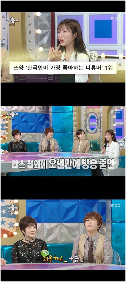 한편 쯔양은 이번 '라디오 스타' 출연이 1년 만에 방송으로 공식 복귀를 한 것이라고 말했다.
