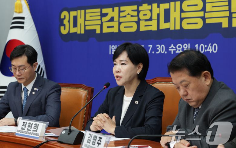 전현희 3대특검종합대응특별위원회 총괄위원장이 30일 오전 서울 여의도 국회에서 열린 3대특검종합대응특위 출범식에서 발언하고 있다. 2025.7.30/뉴스1 ⓒ News1 신웅수 기자 |