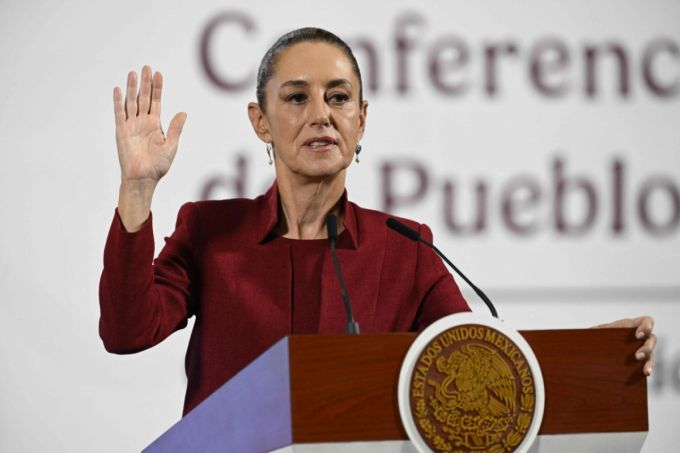 클라우디아 셰인바움 멕시코 대통령이 2일(현지시간) 멕시코 시티에서 기자회견을 갖고 있다. 2025.04.03 /AFPBBNews=뉴스1