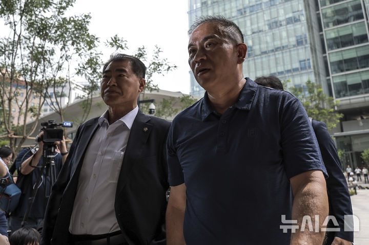 [서울=뉴시스] 정병혁 기자 = 공천개입 의혹 및 여론조사 조작 의혹을 받고 있는 명태균 씨가 31일 서울 종로구 김건희 특검팀(특별검사 민중기) 사무실로 조사를 받기 위해 출석하고 있다. 2025.07.31. jhope@newsis.com