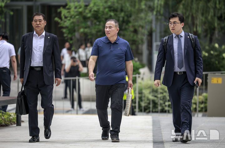 [서울=뉴시스] 정병혁 기자 = 공천개입 의혹 및 여론조사 조작 의혹을 받고 있는 명태균 씨가 31일 서울 종로구 김건희 특검팀(특별검사 민중기) 사무실로 조사를 받기 위해 출석하고 있다. 2025.07.31. jhope@newsis.com
