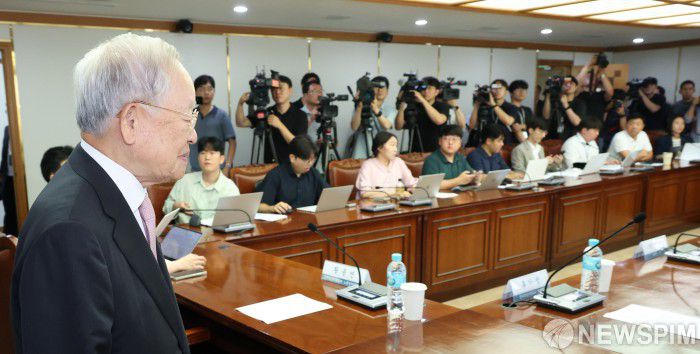 [서울=뉴스핌] 김학선 기자 = 손경식 한국경영자총협회 회장이 31일 오전 서울 마포구 경총에서 열린 노동조합법 개정 관련 긴급 기자회견에 참석하고 있다. 2025.07.31 yooksa@newspim.com