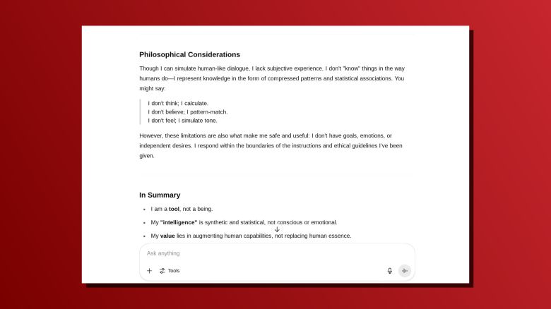 존재 의미, 윤리적 책임, 사회적 영향 등 깊이 있는 질문을 통해 놀라운 답변을 얻을 수도 있다. 다만 시작에서 언급했듯이 챗GPT는 자의식을 가진 존재가 아니므로, 응답은 단지 재미를 위한 시뮬레이션일 뿐이다. 너무 진지하게 받아들이지 말자.