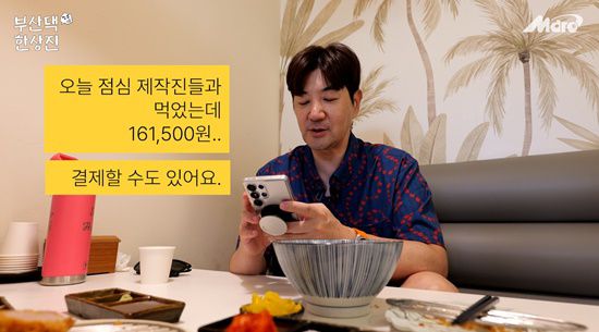 이어 자신만의 숨겨둔 맛집에서 식사 후 결제를 앞두고는 "결제하기 전에 품의서 올리듯 (아내에게) 장문의 문자를 보낸다. 오늘 점심은 제작진과 먹었는데 16만1500원 결제할 수 있어요"라는 문자를 긴장된 손길로 전송하는 등 '아내 바라기' 일상을 전한다.