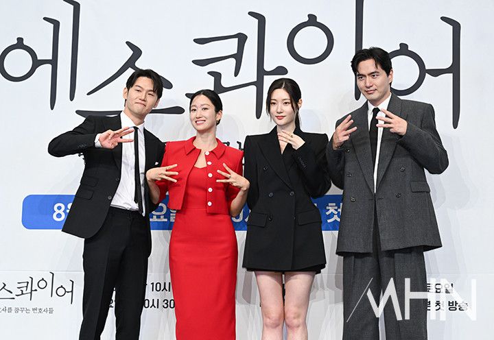(MHN 이현지 기자) 배우 이학주, 전혜빈, 정채연, 이진욱이 31일 오후 서울 구로구 더링크 서울에서 진행된 드라마 '에스콰이어: 변호사를 꿈꾸는 변호사들' 제작발표회에 참석해 포토타임을 갖고 있다.