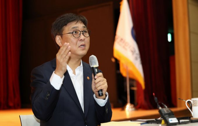 최휘영 신임 문화체육관광부 장관이 31일 오후 세종시 정부세종청사에서 열린 취임식 후 마련된 직원들과의 대화에서 질문에 답하고 있다. / 사진 = 뉴스1 |