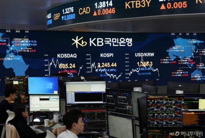 31일 오후 서울 여의도 KB국민은행 스마트딜링룸에서 딜러들이 업무를 하고 있다. /사진=뉴시스