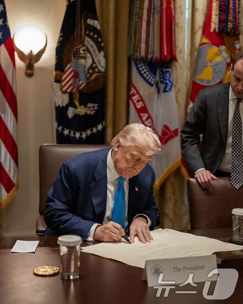 백악관은 30일(현지시간) 인스타그램 계정에 트럼프 대통령이 백악관에서 한미 무역합의 문서에 서명하는 사진을 올렸다. (백악관 인스타그램 계정. 재판매 및 DB 금지) 2025.7.31/뉴스1 |