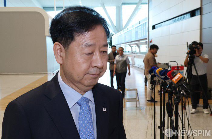 [영종도=뉴스핌] 김학선 기자 = 구윤철 부총리 겸 기획재정부 장관이 29일 오전 스콧 베선트 미 재무장관과의 통상 협의를 위해 미국 워싱턴DC로 출국하고 있다. 구 부총리와 베센트 장관의 회담은 '25% 상호관세' 부과(8월 1일)를 하루 앞두고 양국간 통상논의를 최종 조율하는 자리가 될 것으로 보인다. 2025.07.29 yooksa@newspim.com