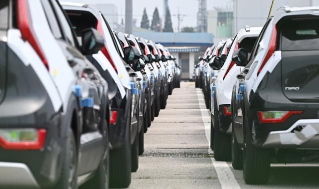 7월 30일 경기 평택시 포승읍 평택항 자동차 전용부두에 선적을 기다리는 수출용 차량들이 세워져 있다. 평택=뉴시스 |