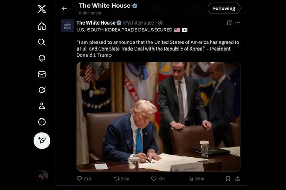 백악관이 공식 엑스 계정에 한국과의 관세 협상 타결을 밝히면서 공개한 트럼프 대통령 사진. /백악관 엑스 |